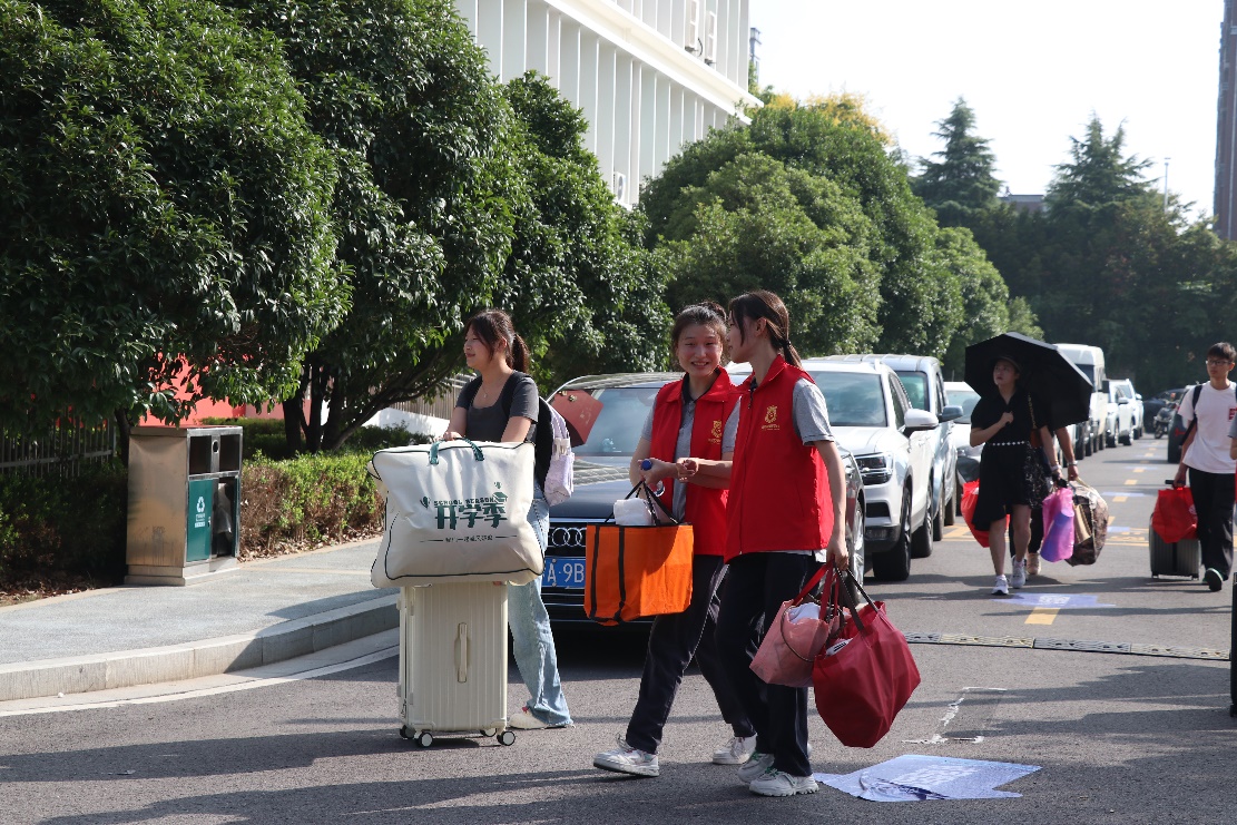 在各引导服务点上,学生志愿者提前到岗做好充足准备,热情等候家长和新生的到来。他们引导新生与家长到达教学楼区域完成报到手续,为新生介绍教学楼、宿舍、食堂等功能区域,志愿者们细致耐心地服务,得到新生与家长的一致好评。